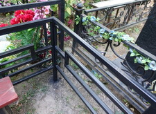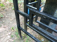 Последовательность работы стандартная. Во-первых, сжечь старую краску, во-вторых, зачистить ограду до металла, после покрыть грунтом чистый металл и покрасить черной краской. После покраски убраться на могиле. Далее на фото обожженная краска на ограде.